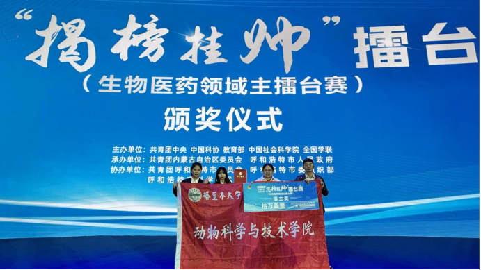 2025年9月29日,第十九届“挑战杯”竞赛2025年度中国青年科技创新“揭榜挂帅”擂台赛在内蒙古呼和浩特圆满落幕。塔里木大学动物科学与技术学院“鹿安计划”项目团队凭借对HT-11号榜题“鹿布鲁氏菌间接ELISA抗体检测试剂的研制与应用”提出的创新方案,从全国顶尖高校中脱颖而出,成功揭榜,成为该题目的全国擂主(特等奖第一名)。实现了学校在全国“挑战杯”竞赛专项赛中斩获最高奖“零”的突破!