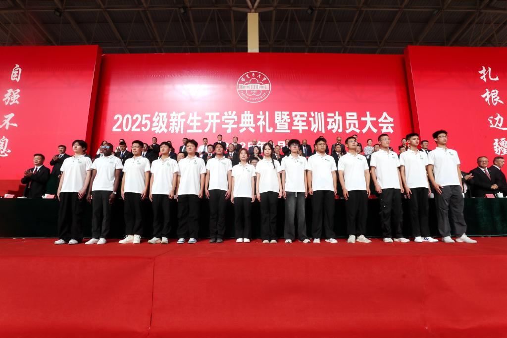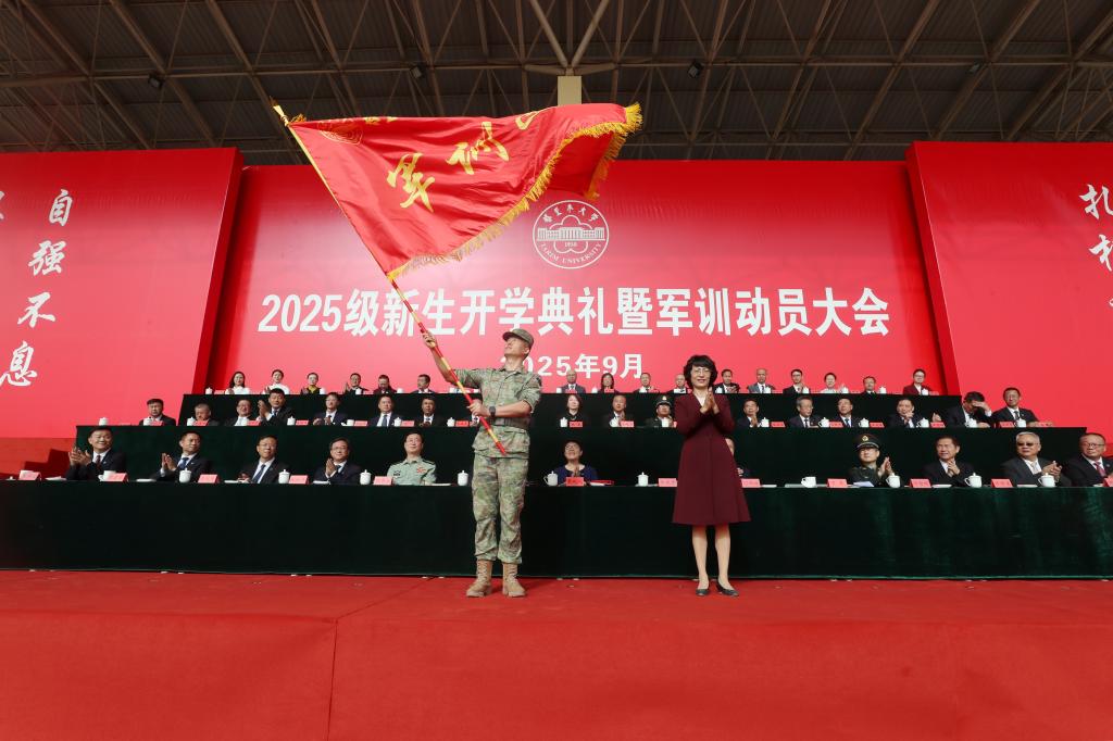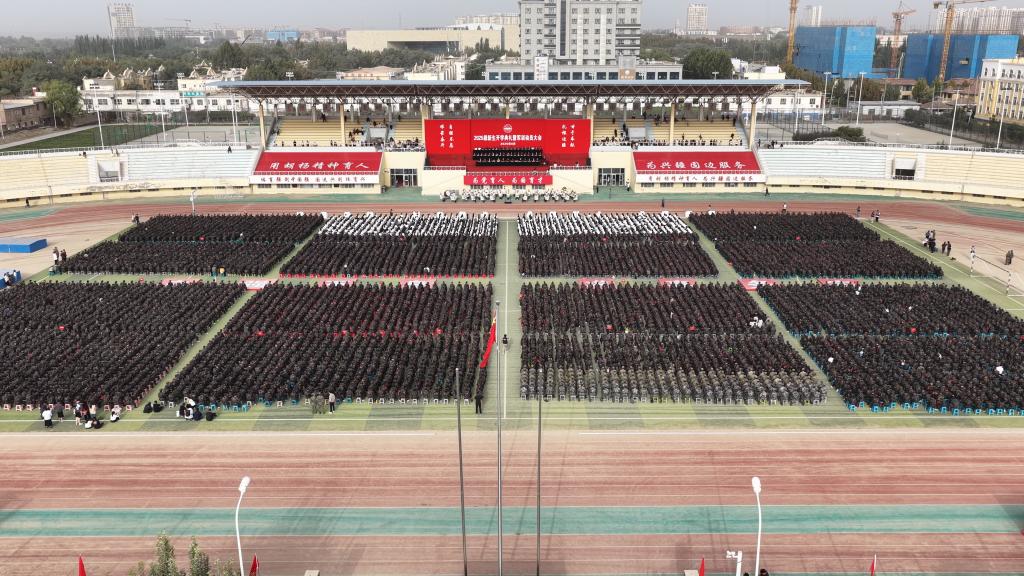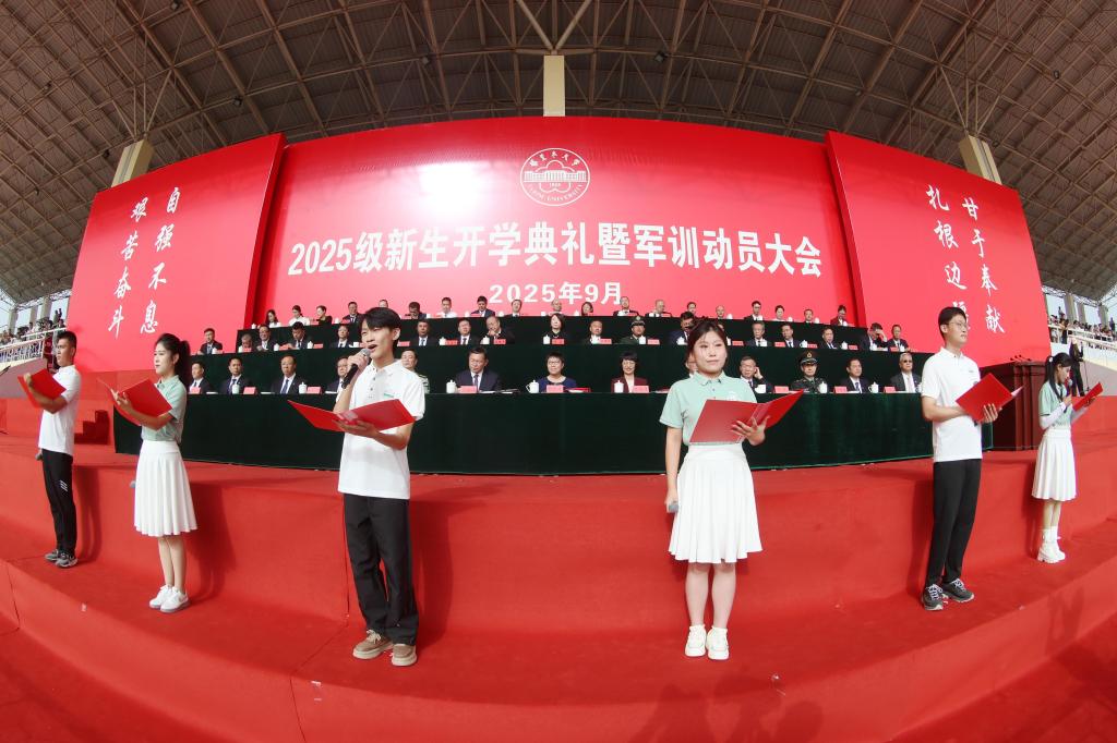 9月9日上午,伴随着庄严的国歌声,塔里木大学2025级新生开学典礼暨军训动员大会在西区运动场举行。中国科学院院士曹晓风,第一师阿拉尔市党委书记、政委丁翊强,校领导张爱萍、闫祥林、于军、林松涛、汤智辉、王成涛、万传星、张宏荣、谢建新、张伟信、高庆华,阿拉尔市人民武装部领导,各学院、有关部门领导出席。于军主持。辅导员、教师代表、在校生代表、2025级新生、家长、驻训教官参加。